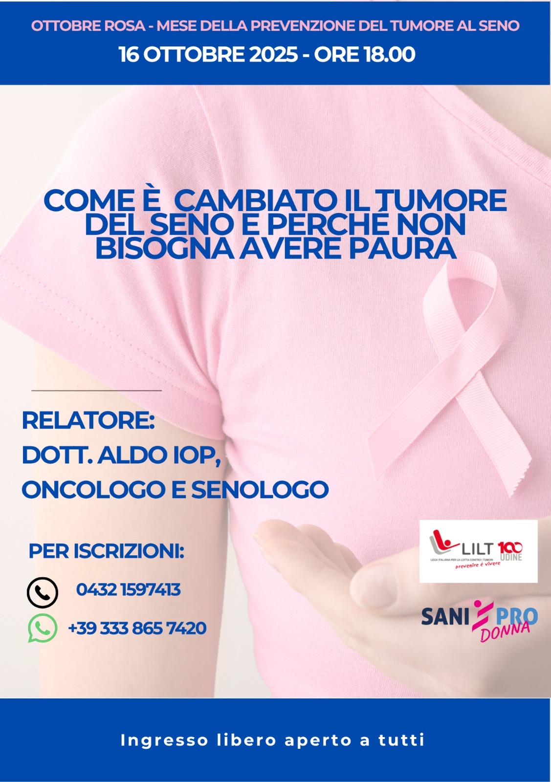 Relatore: dott. Aldo Iop, oncologo e senologo.