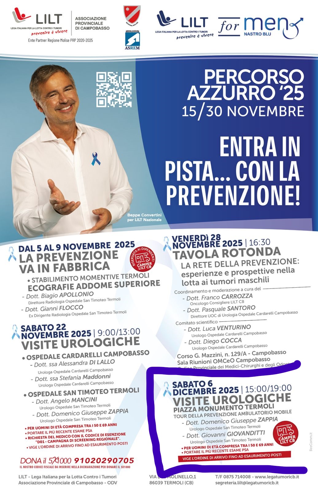 Le prestazioni saranno rese possibili grazie alla disponibilità del dott. Domenico Giuseppe Zappia (urologo ospedale San Timoteo Termoli) e del dott. Giovanni Giovanditti (urologo ospedale San Timoteo Termoli).