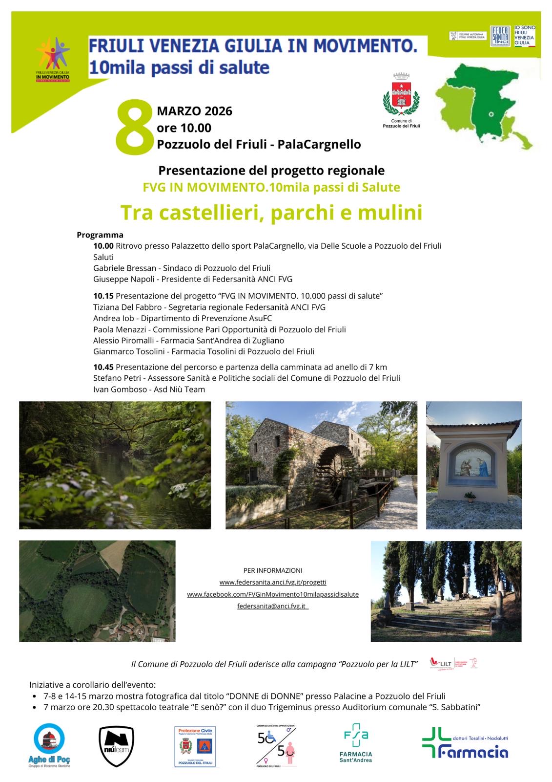 Domenica presentazione del progetto regionale FVG in movimento. 10mila passi di Salute: "Tra castellieri, parchi e mulini"